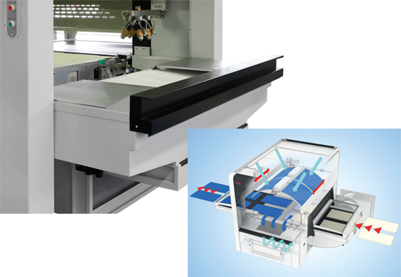 FACILE喷漆机配备的工件传输系统,采用的皮带为不易磨损和不易腐蚀的碳纤维带(CFB),因此实现了其可回收漆料、使用寿命较长、便于更换、可不易涂料沾到工件底面和 边部以及涂漆质量较好的特点。配有可定位的清洁小车和皮带自动定中装置。